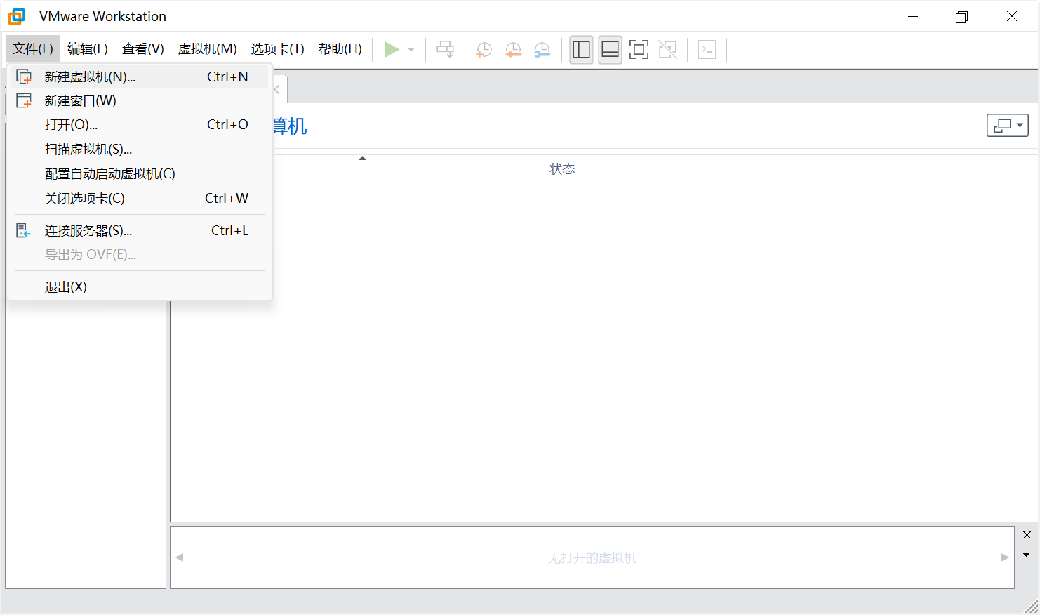 1、打开VMware,点击“文件”->“新建虚拟机”。