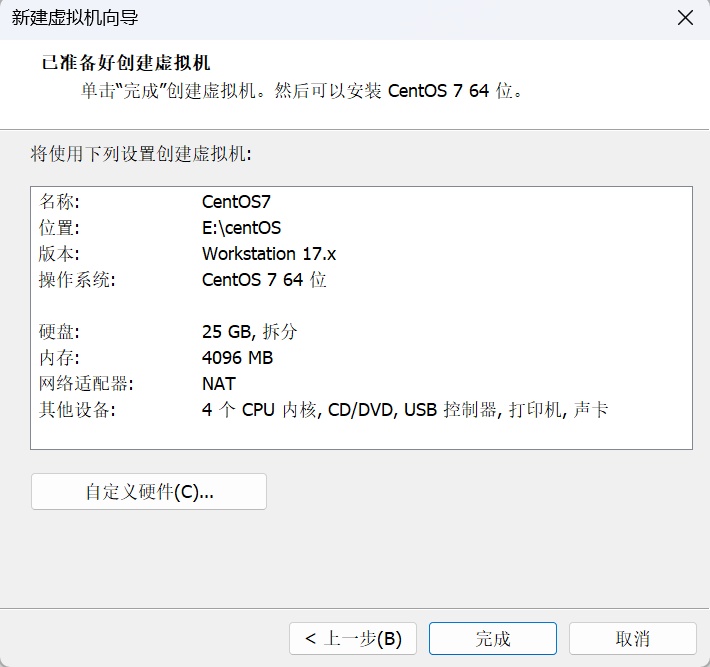 15、检查虚拟计算机设置的信息,点击“完成”。
