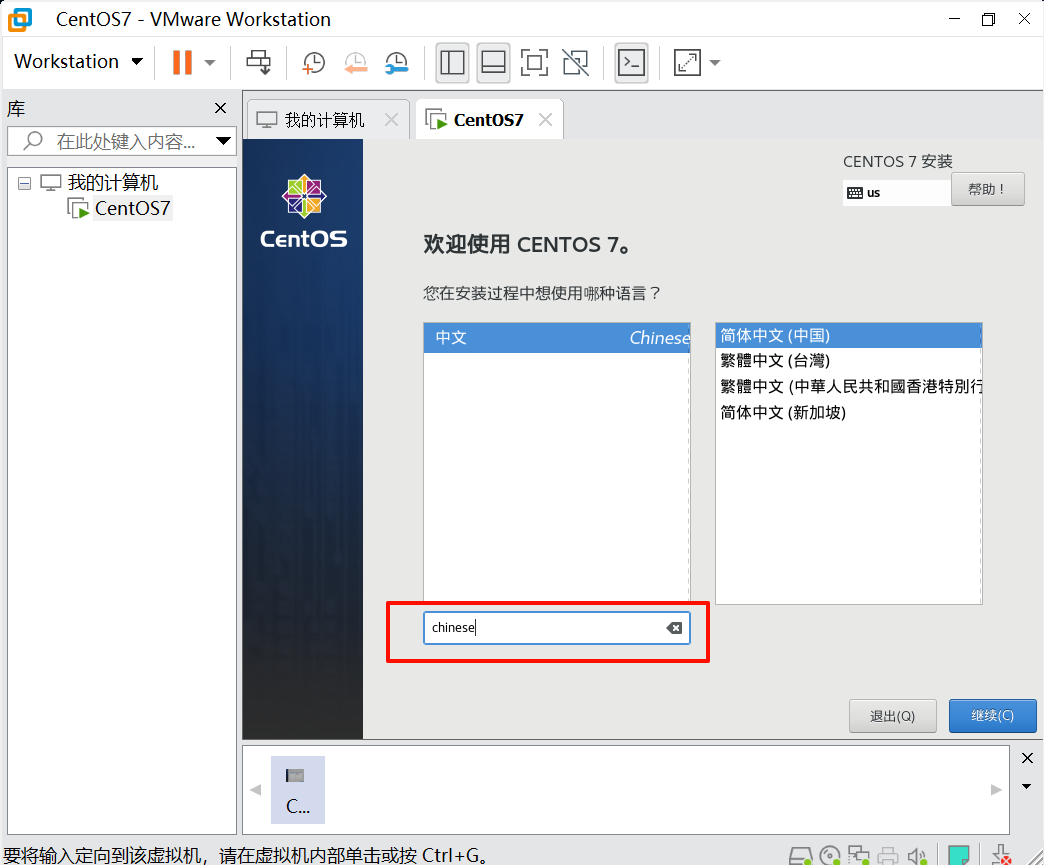 21、输入“chinese”,选择安装过程中需要使用的提示语言