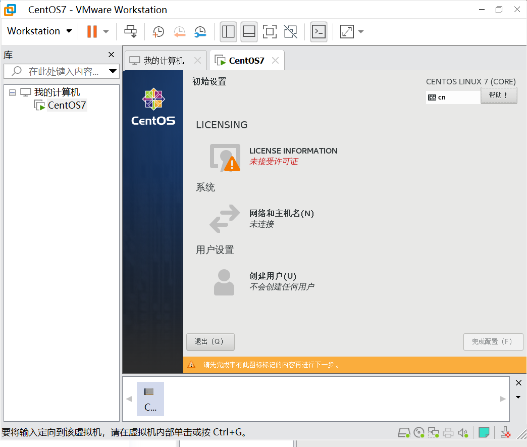 31、第一次进入虚拟机u低于LICENSING,需要接受许可后点击“完成配置”。
