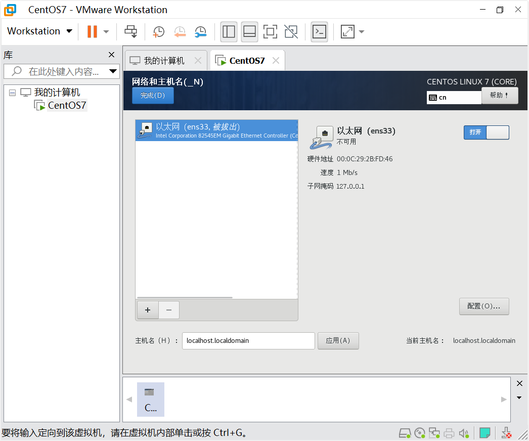26、设置网络和主机名,开启以太网,注意主机名和当前主机IP信息。