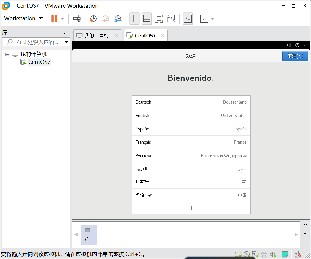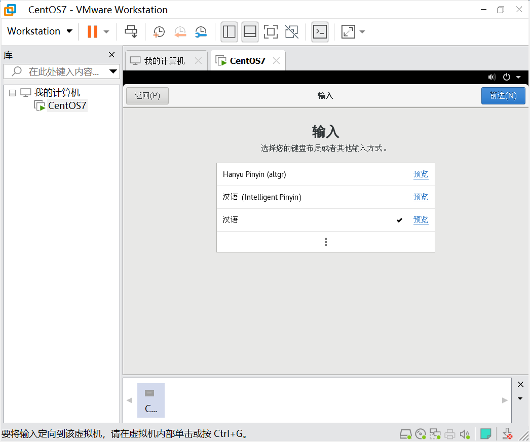 32、选择“汉语”,点击“前进”。选择输入“汉语”,点击“前进”。