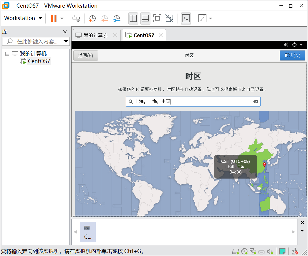 22、设置时区,时间和日期,与宿主机一致即可。【地区亚洲、城市上海】