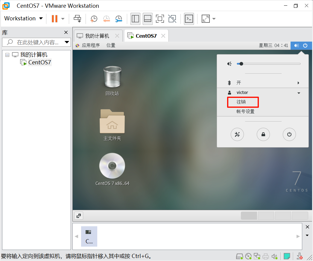 37、进入系统后,点击关机按钮,找到用户,选择注销。