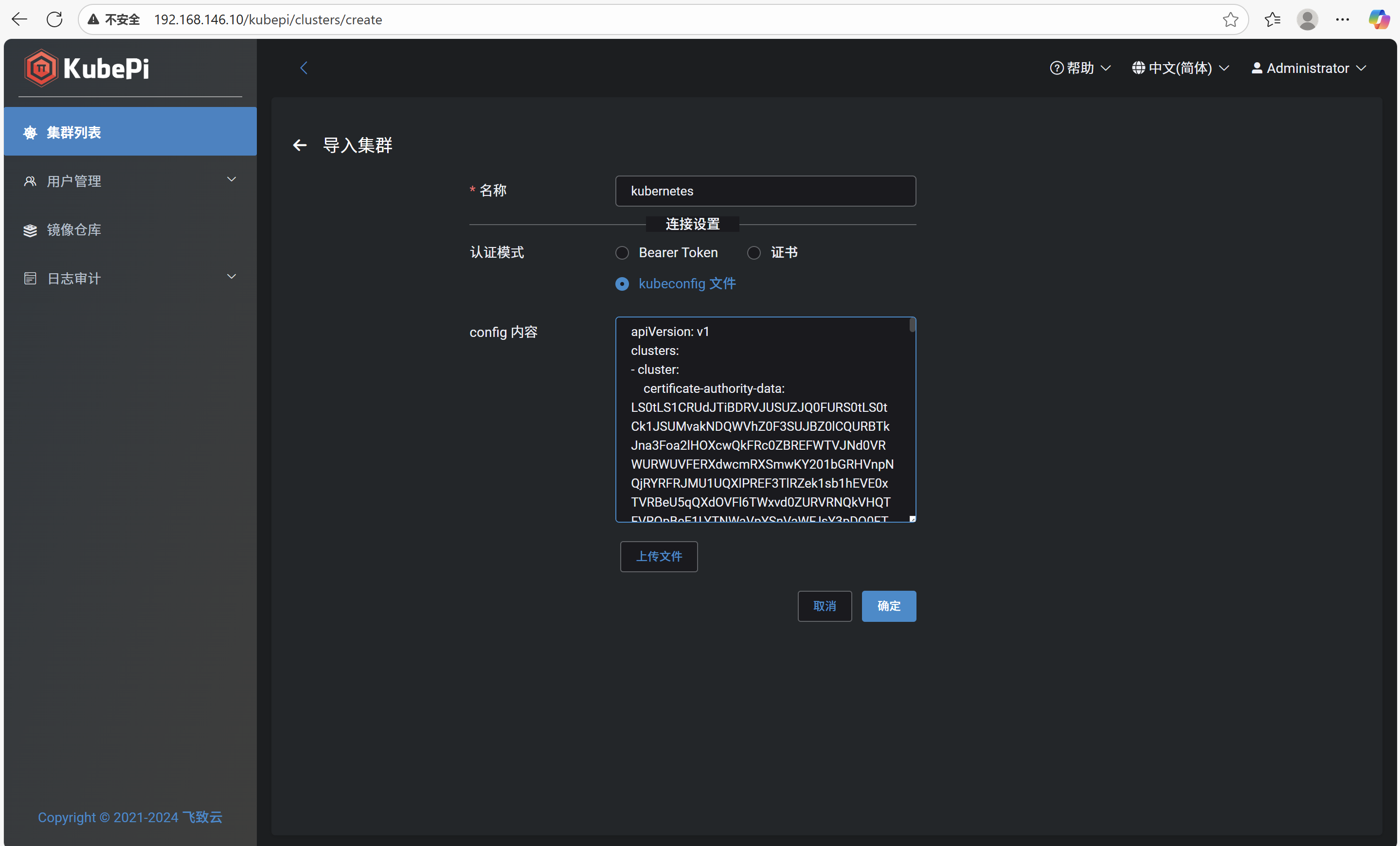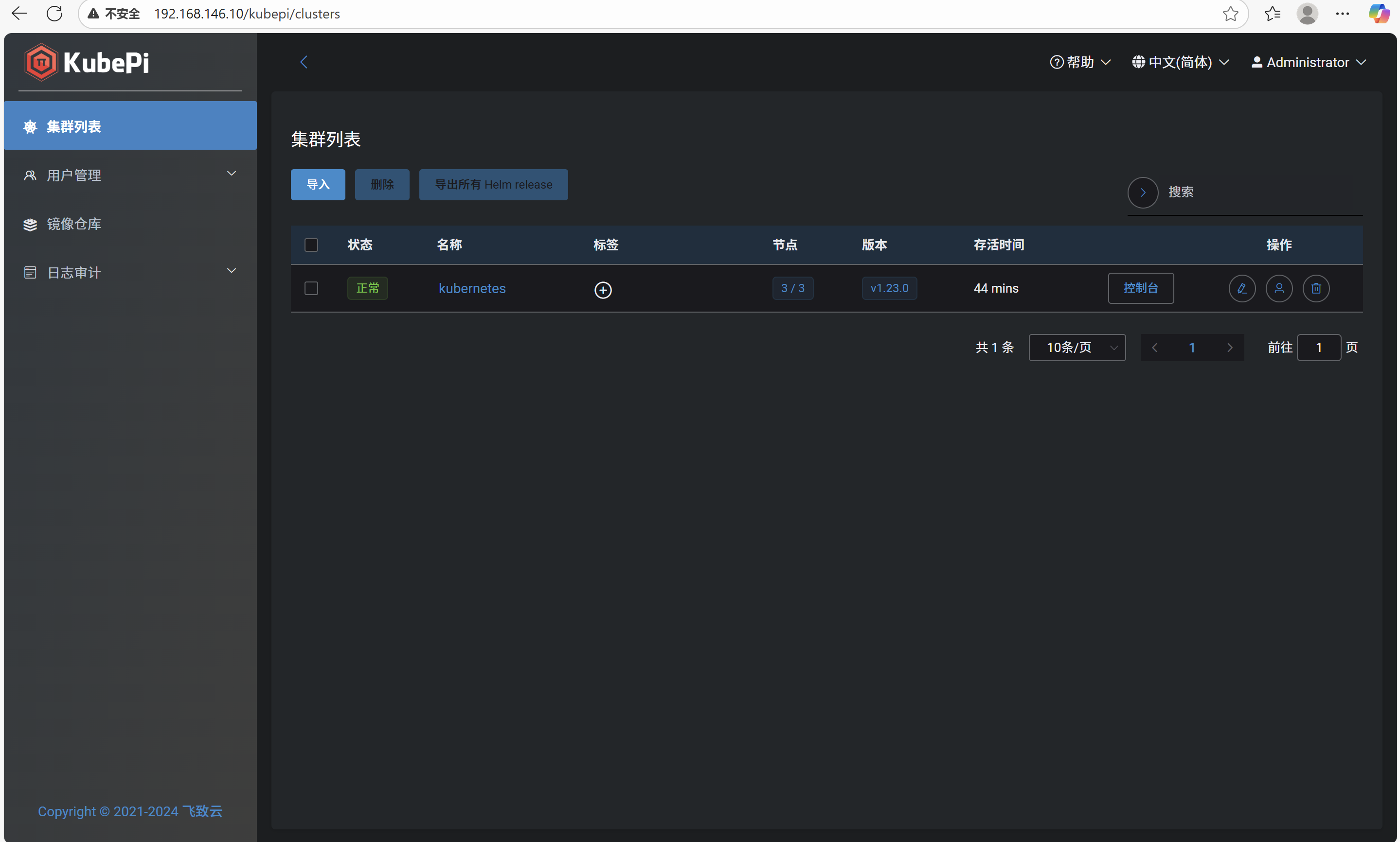 docker run --privileged -d --restart=unless-stopped -p 80:80 1panel/kubepi# 用户名: admin