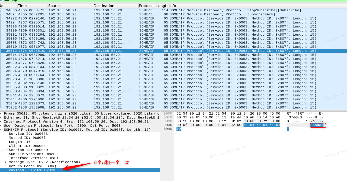 传输的字符串是someData.Data = "aaaaaaaaaaaaaaaaaaaa"; 20个a