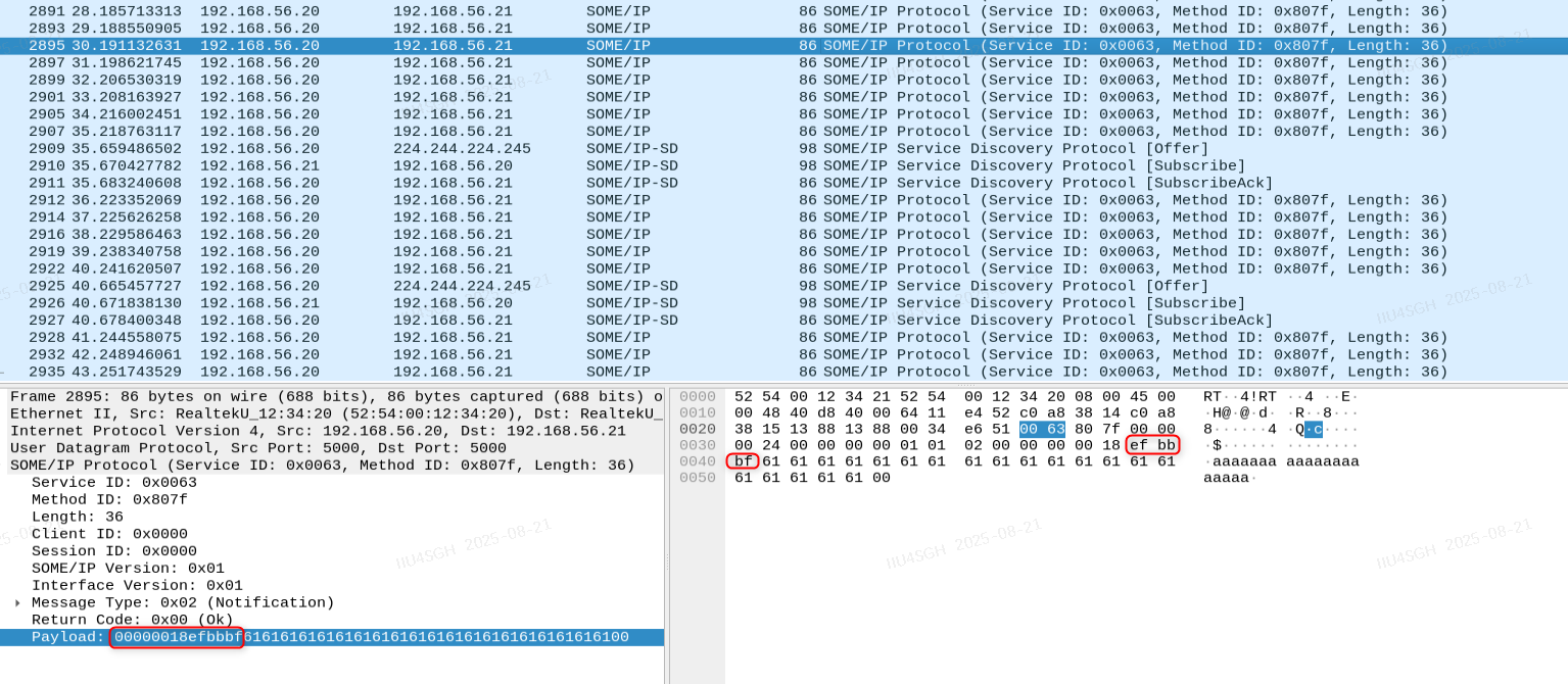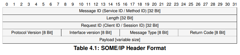 SOMEIP报文分为Header和Payload两部分,如下图。