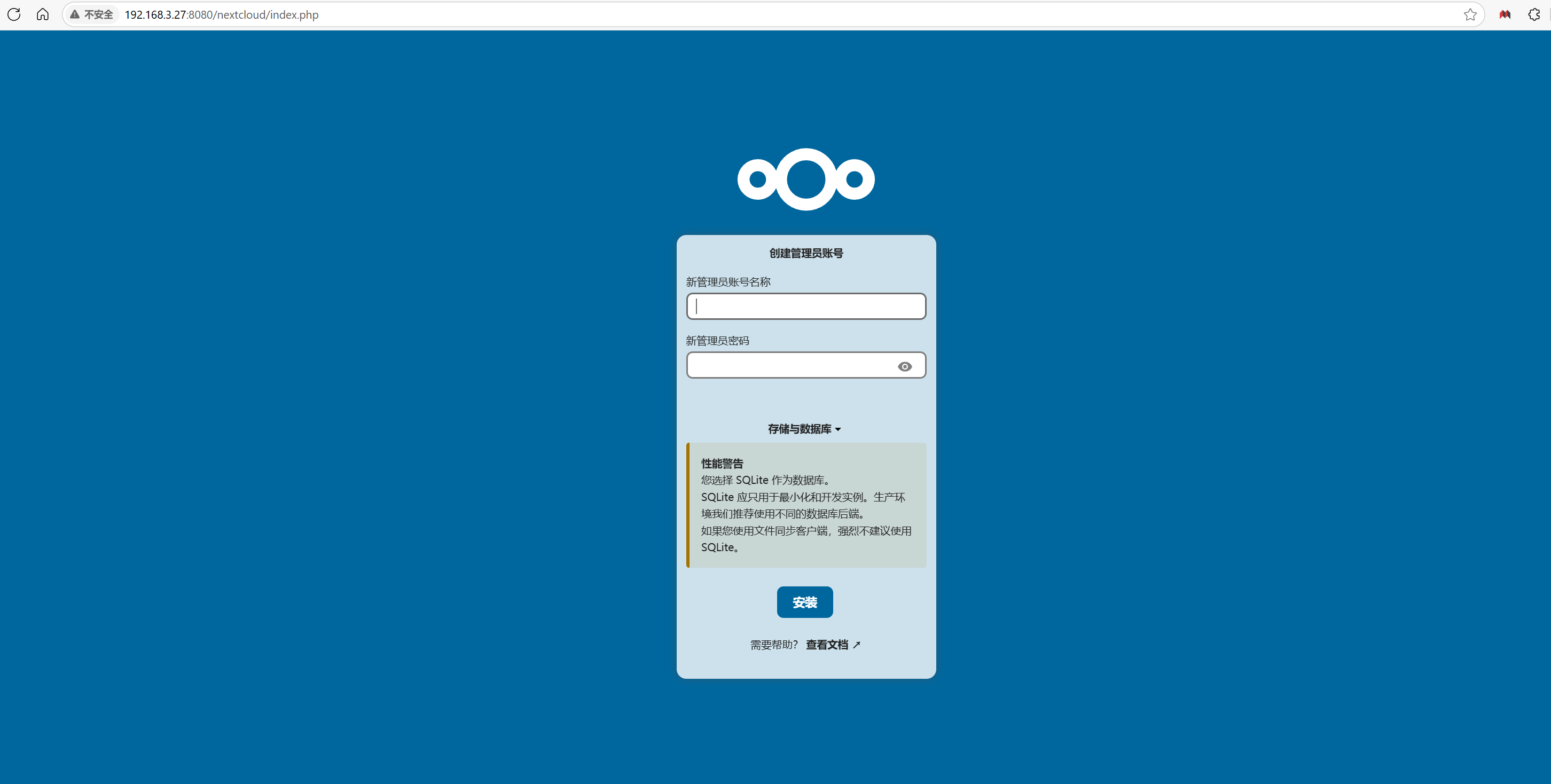 进入nextcloud 安装界面:http://ip:8080/nextcloud