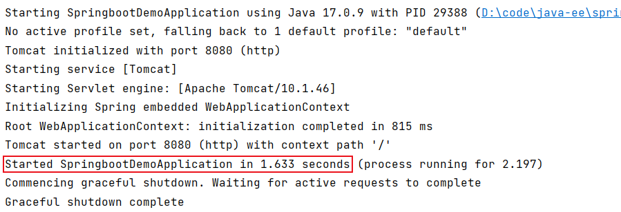点击启动类的main方法就可以运行Spring Boot 项目了,启动成功如下图所示: