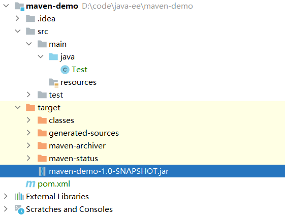 3. 当我们在 pom 文件中配置完依赖之后,点击刷新,Maven 会根据坐标的配置,去仓库里寻找Jar包,并把他下载下来,添加到项目中。这个 Jar 包下载的地方就称为仓库