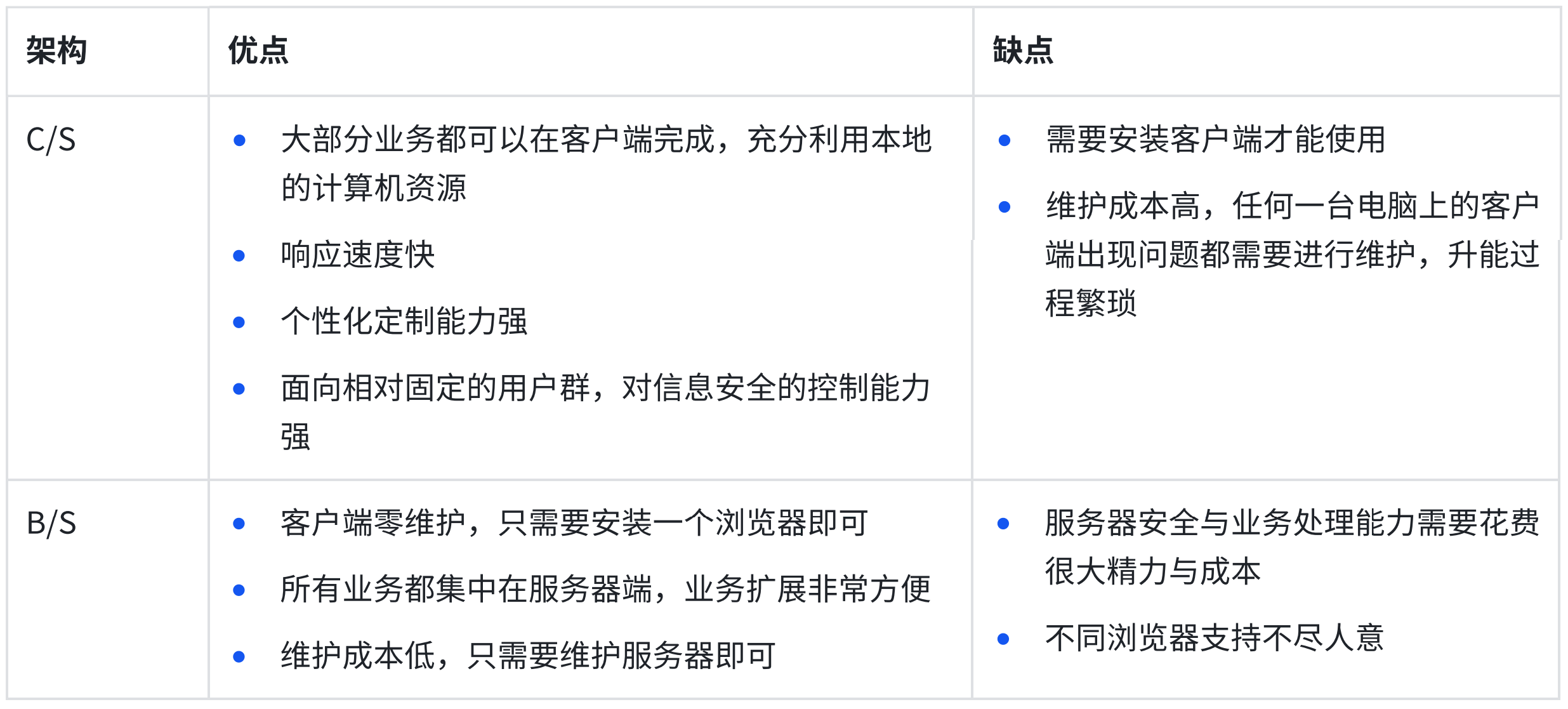 目前用户对PC端应用的开发结构模式主要分为C/S和B/S结构