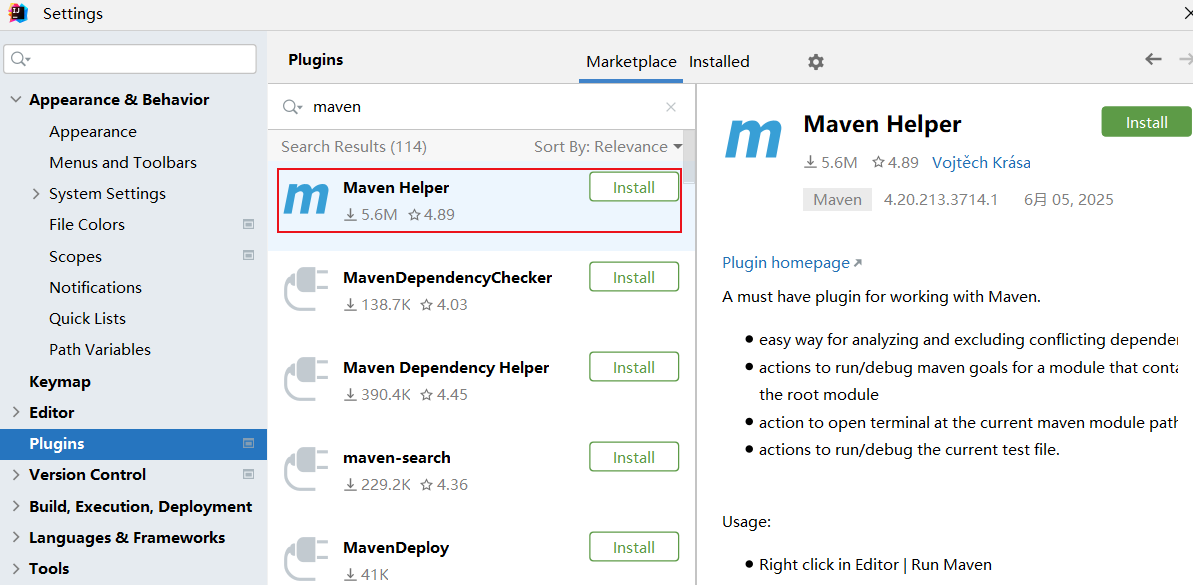 安装之后,打开pom文件,可以看到 Jar 包之间的依赖关系