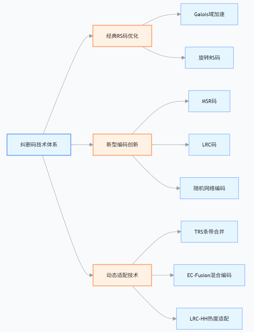当前研究聚焦三大痛点:高恢复成本(传统 RS 码重构需大量数据读取)、动态适配不足(难以应对数据冷热变化)、资源消耗过高(编码计算与网络传输开销大),由此催生了多维度的技术创新。