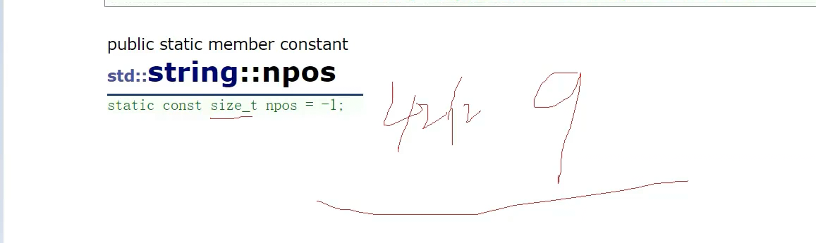 npos是string const静态的成员变量,可以直接在类里面用,外面指定类域 ,值是-1吗,真实的值是-1吗,存的-1的补码全1但是给给这个类型size_tunsigned int 瞬间变成整形最大值了,