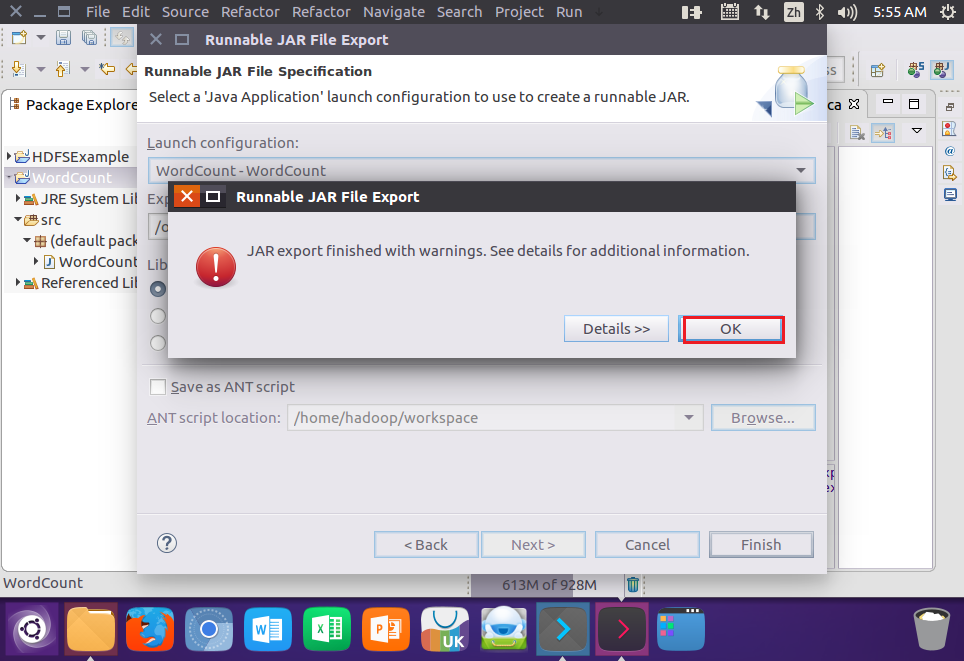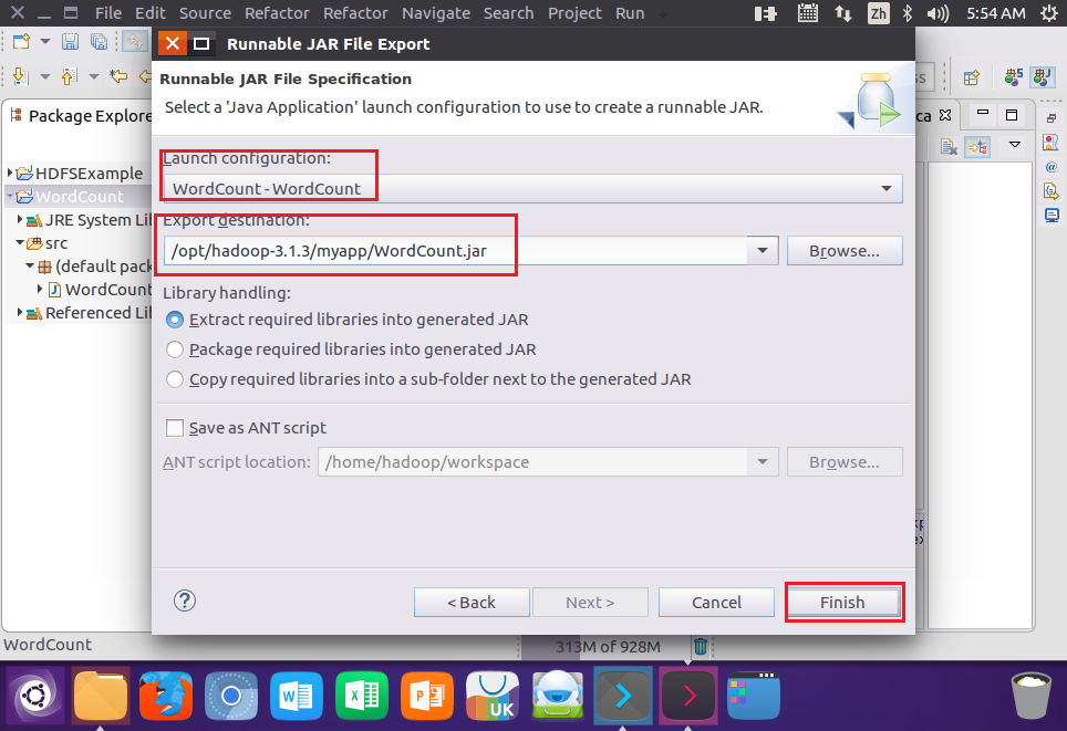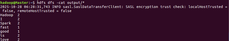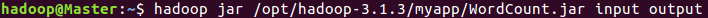 hadoop jar /opt/hadoop-3.1.3/myapp/WordCount.jar input output