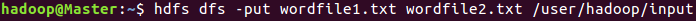 hdfs dfs -put wordfile1.txt wordfile2.txt /user/hadoop/input