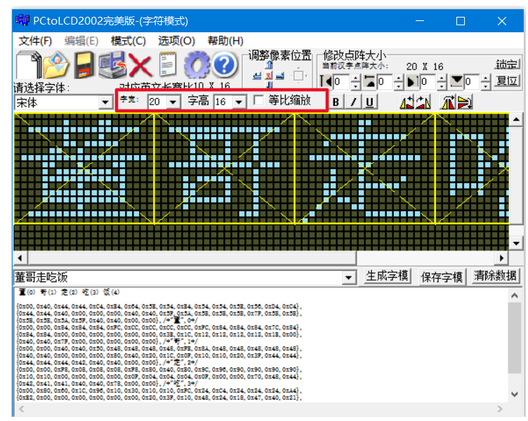 这里我的设置是字宽 20 ;字高 16,所以是40