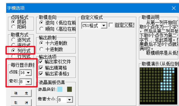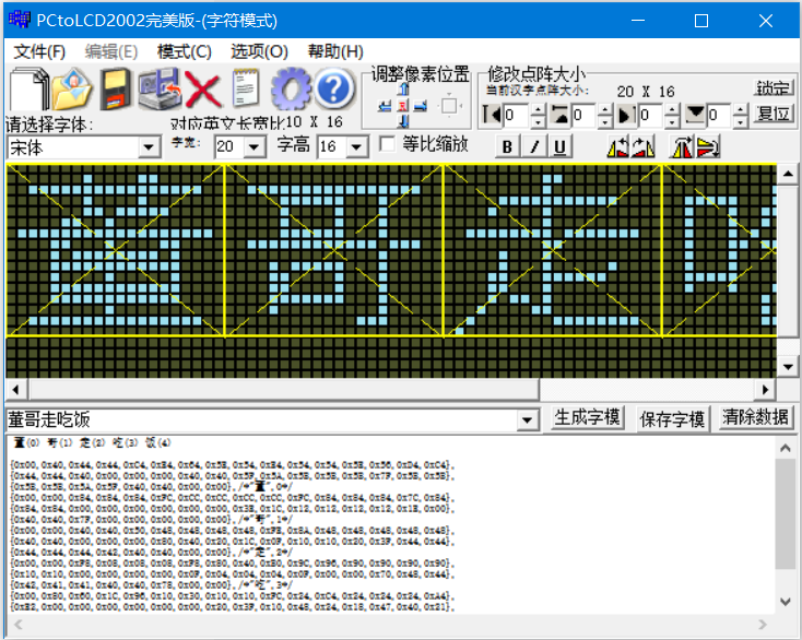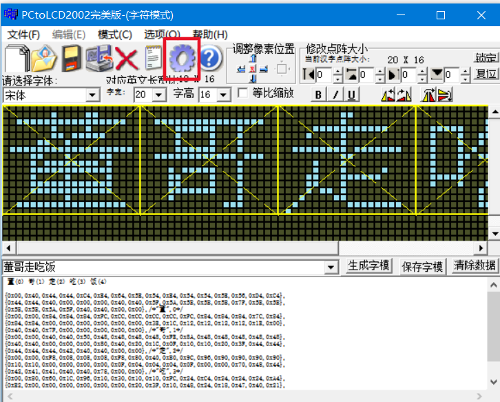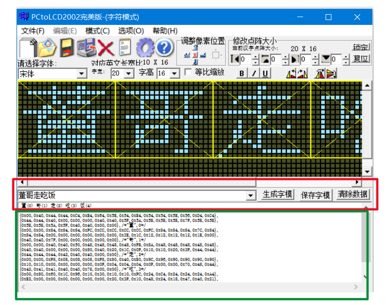 (1)在红色框中输入想要显示的中文,点击“生成字模”