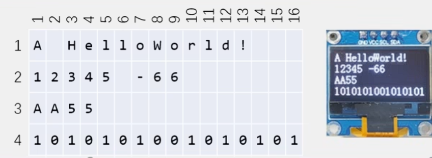 { uint8_t i;uint8_t wide=20;//字宽OLED_SetCursor((Line-1)*2, (Column-1)*wide); //参数1:把光标设置在第几页. 参数2:把光标设置在第几列for (i = 0; i < wide; i++){OLED_WriteData(OLED_F10x16[Num][i]); //显示上半部分内容}OLED_SetCursor((Line-1)*2+1,(Column-1)*wide); for (i = 0; i < wide; i++){OLED_WriteData(OLED_F10x16[Num][i+wide]); //显示下半部分内容}}