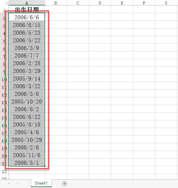 第二步:长按鼠标左键拖动圈出需要设置日期格式的单元格。