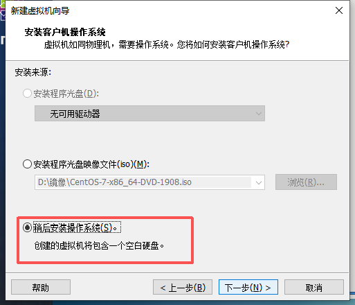 4、选择系统iso镜像文件 可以稍后再选择