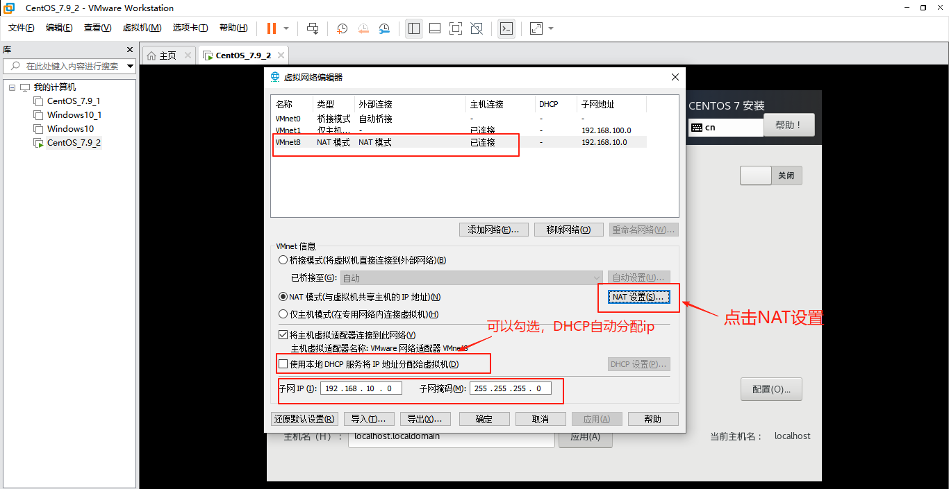 确定了内网网段之后,设置虚拟机的网络