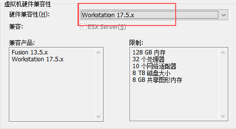 3、硬件兼容性根据自己的虚拟机版本选择