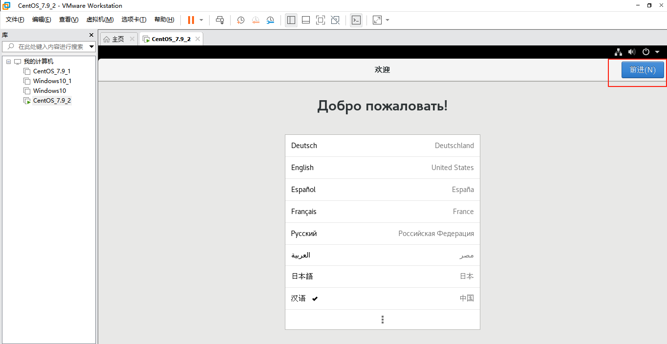 12)选择语言,默认前进就行
