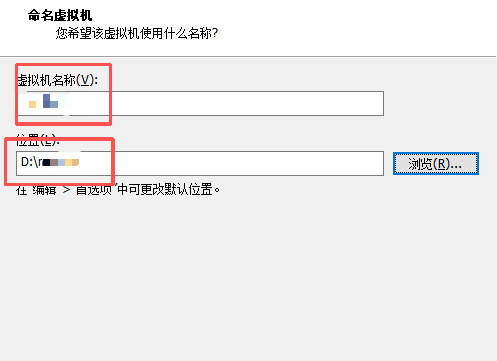 6、设置虚拟机名称和存放的位置