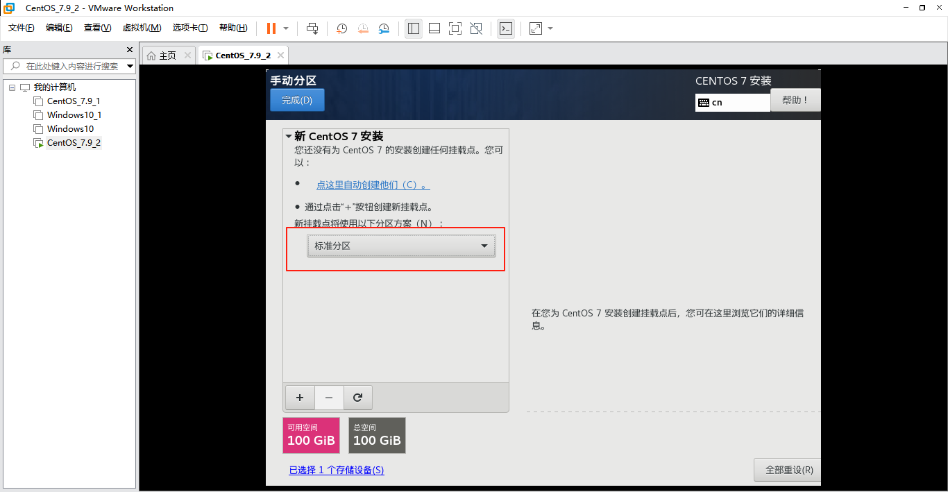 在分区方案有标准分区,btrfs,LVM,LVM 简单配置,这里选择“标准分区”就可以