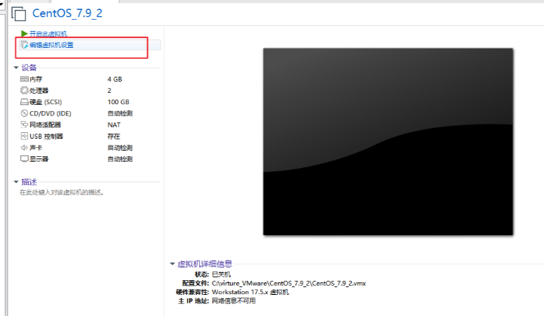 12、点击编辑虚拟机设置,选择我们的Centos镜像文件
