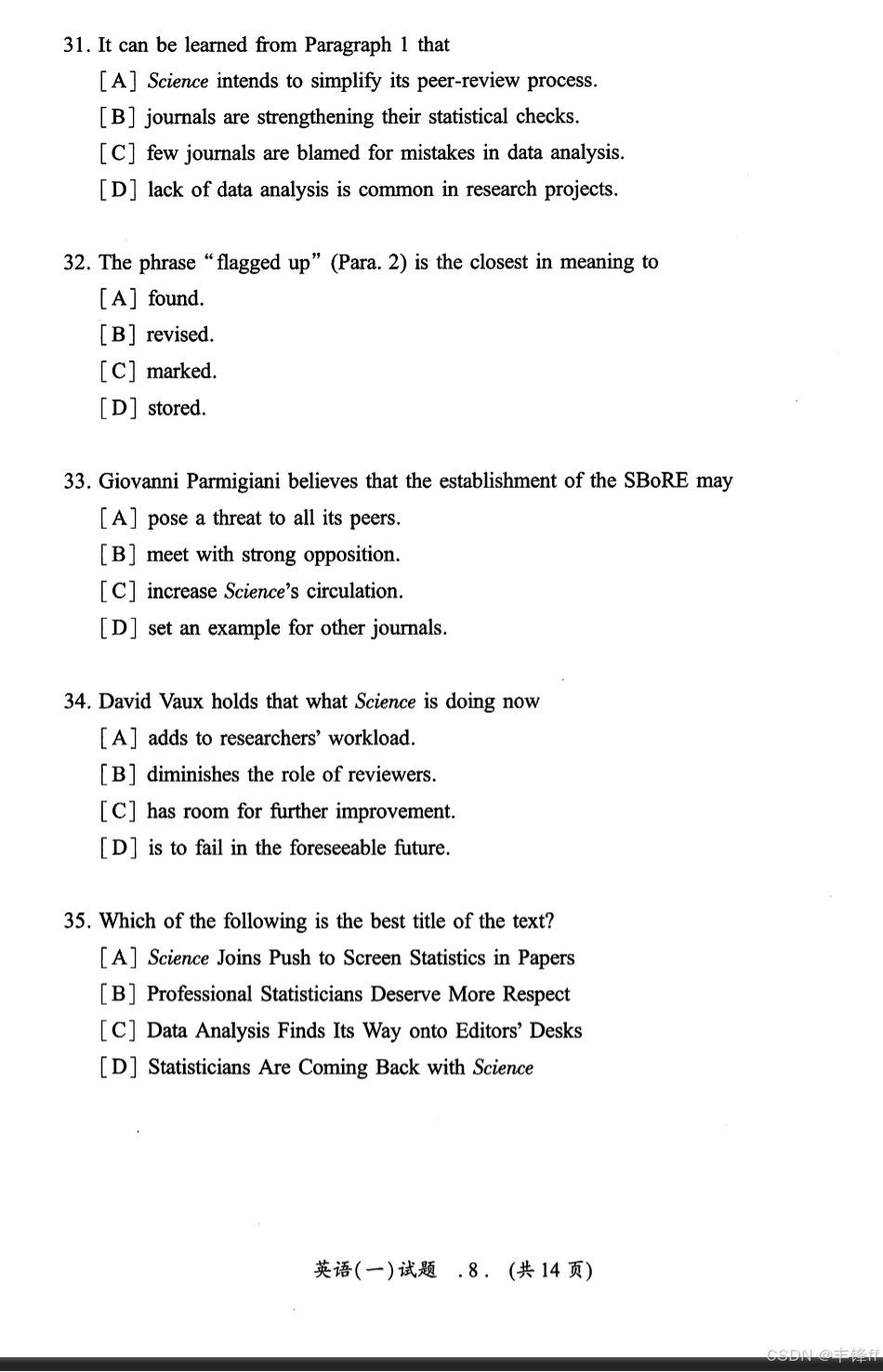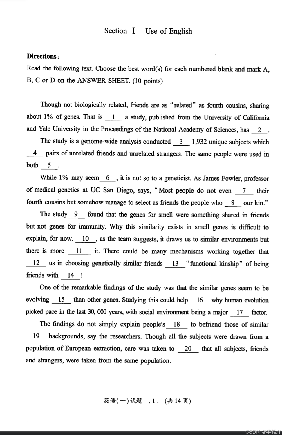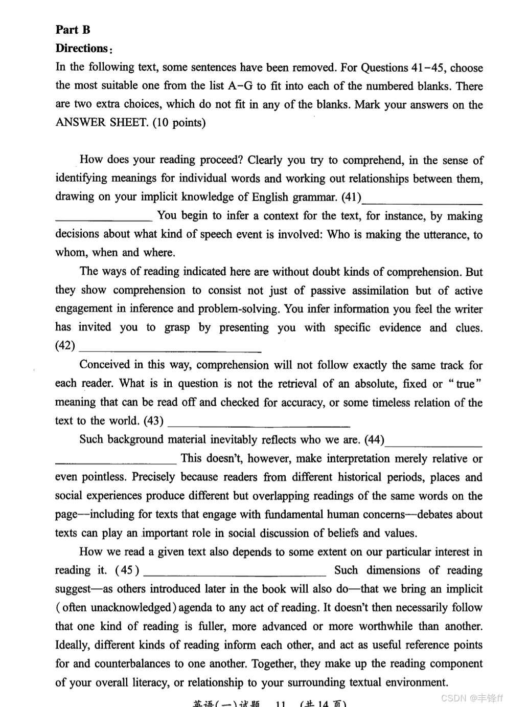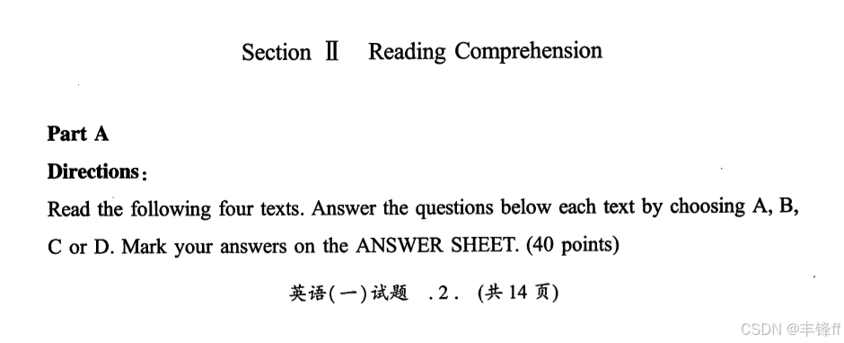Section I Use of EnglishSection II Reading ComprehensionPart AText 1Text 2Text 3Text 4Part B Part CSection III WritingPart APart B