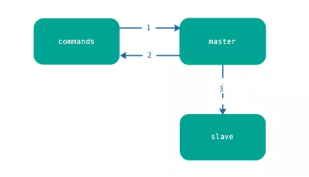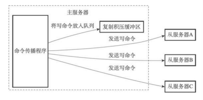 主节点不但负责数据读写,还负责把写命令同步给从节点,写命令的发送过程是异步完成,也就是说主节点处理完写命令后立即返回客户端,并不等待从节点复制完成。异步复制的步骤很简单,如下: