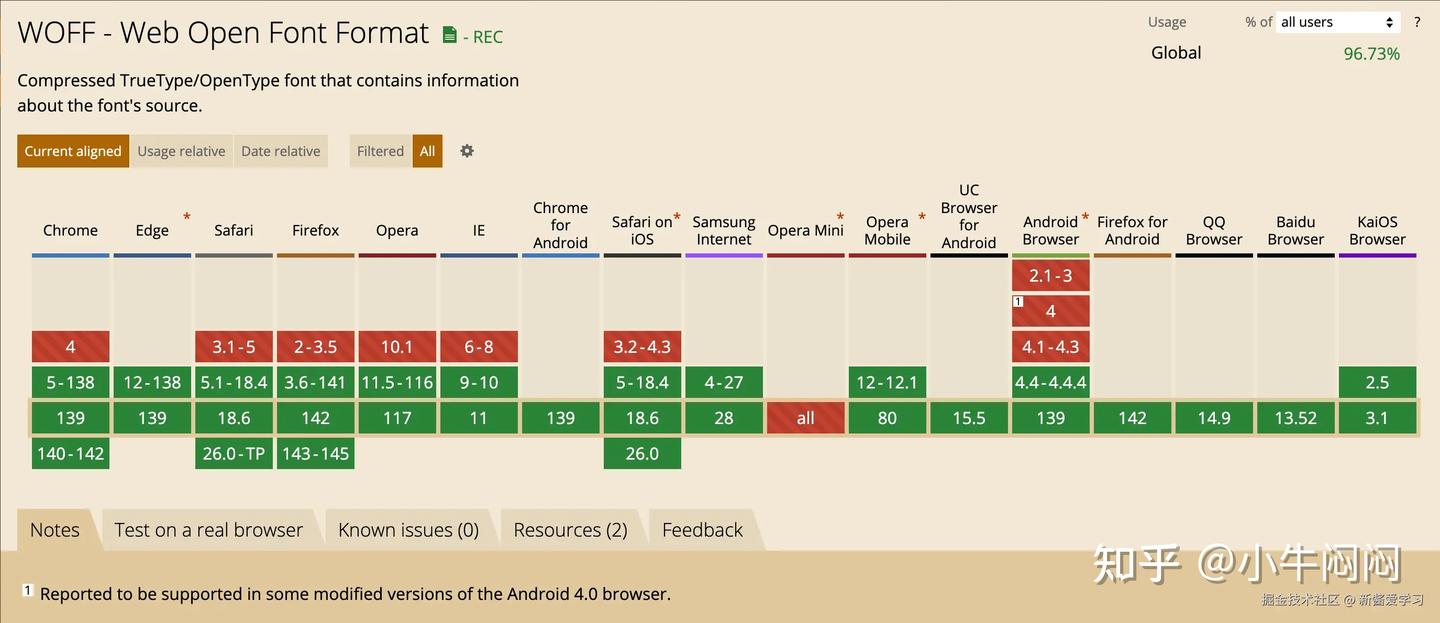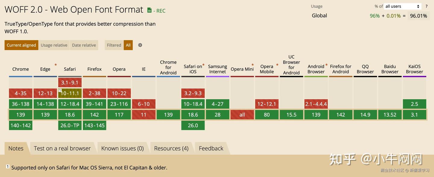 }woff格式相对于ttf,一般可以减少 40% 左右的体积,而woff2相对于ttf,一般可以减少 50% 左右的体积。woff/woff2的兼容性良好,几乎所有现代浏览器都已支持,只是在 IE 浏览器的支持上略差一点,在移动端使用一般是没有问题的,并且通过woff2->woff->ttf 的降级策略,可以兼顾性能与兼容性。