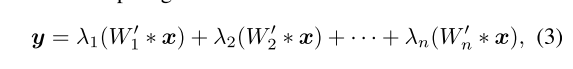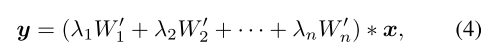 这意味着分别对输入特征进行卷积,并将这些特征的输出相加。(3)相当于用这些核的组合卷积权重(等式)执行一次卷积运算。(4)。该策略提高了网络对多个面向对象特征的表示能力,但由于繁重的卷积计算在方程中只发生一次,因此保持了很高的效率。