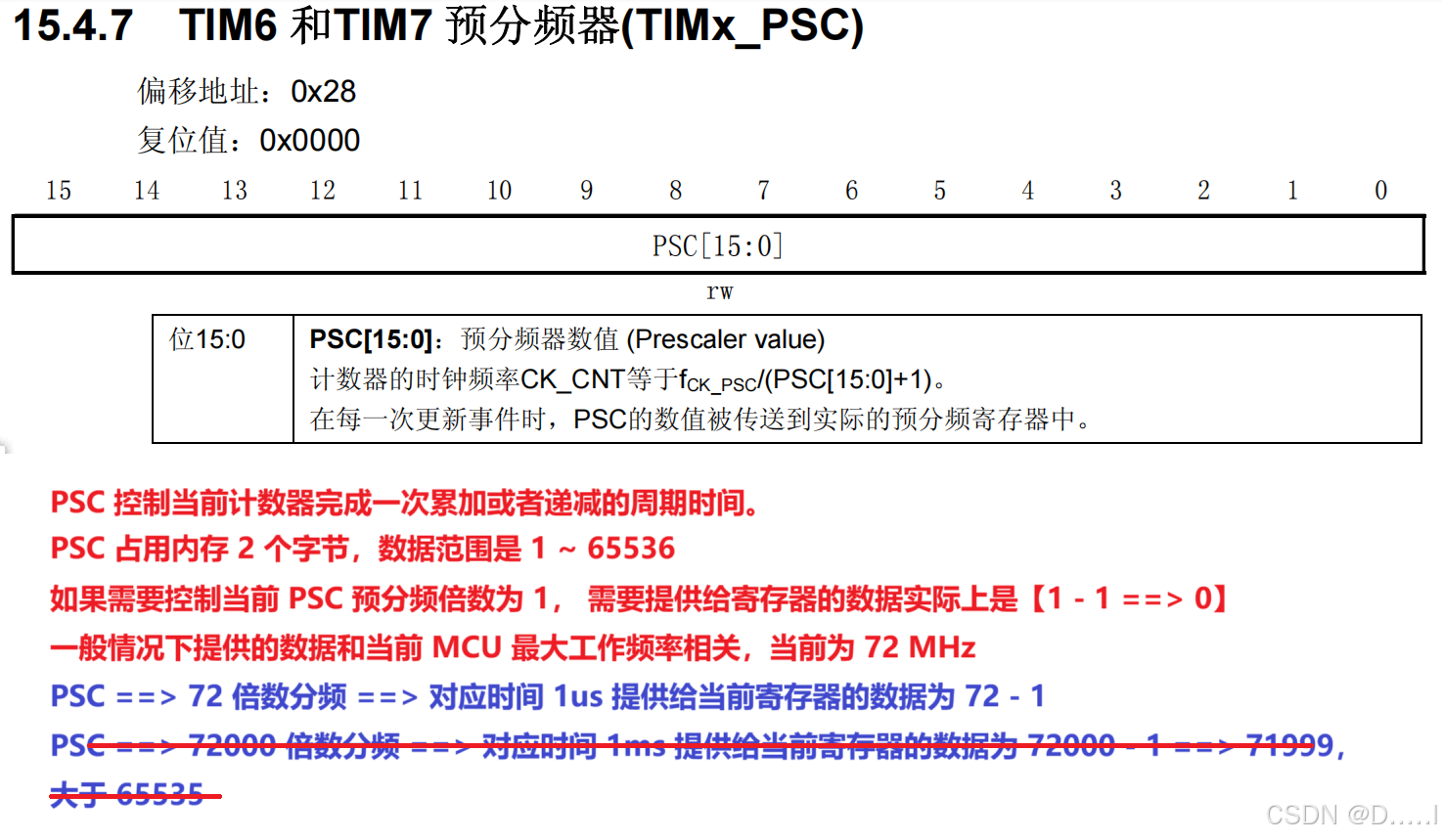 2.2.2 TIMx_PSC 预分频倍数寄存器