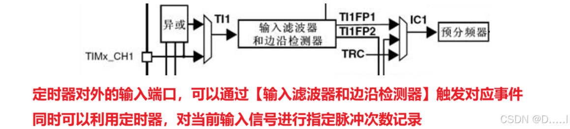 - 16位可编程(可实时修改)预分频器,用于对输入的时钟按系数为1~65536之间的任意数值分频