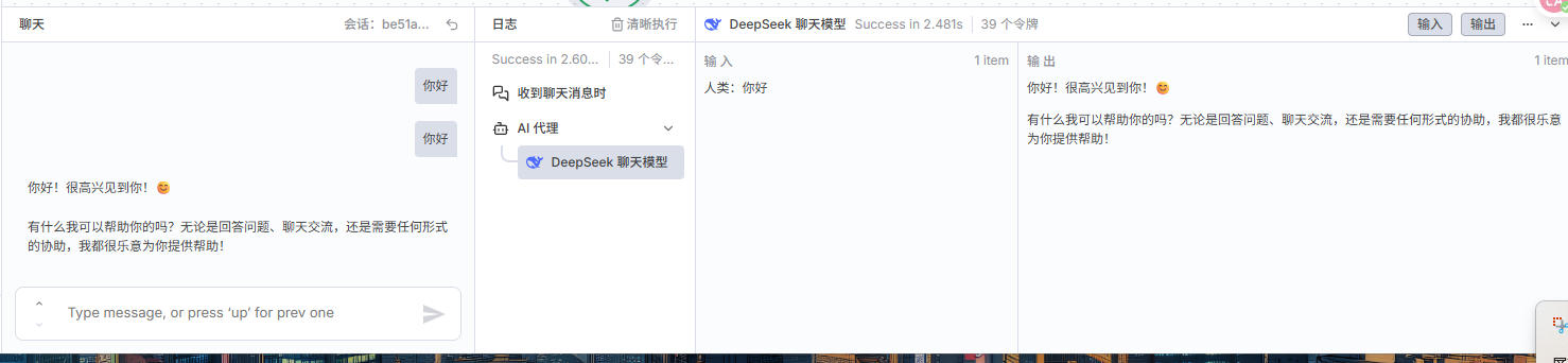然后在左下角这里输入发送消息就ok了,就能正常的跑了