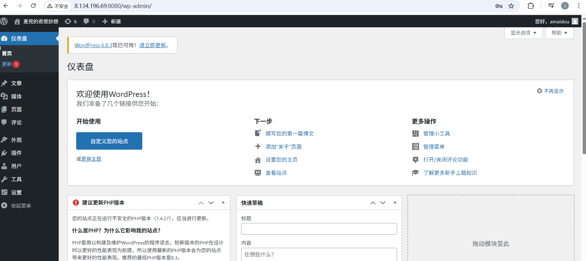 访问博客:浏览器打开http://localhost:8080,正常显示 WordPress 初始化页面。