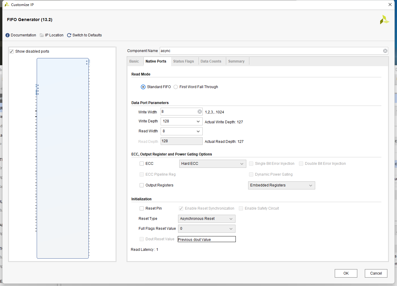 endasync1 async1_1_inst (.wr_clk(clk), // input wire wr_clk.rd_clk(clk), // input wire rd_clk.din(data_in1), // input wire [7 : 0] din.wr_en(wr_en1), // input wire wr_en.rd_en(rd_en), // input wire rd_en.dout(rd_dout1), // output wire [7 : 0] dout.full(), // output wire full.empty(empty1) // output wire empty