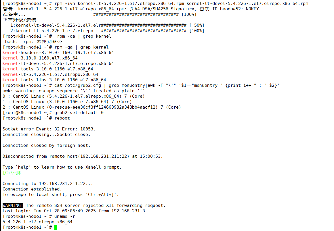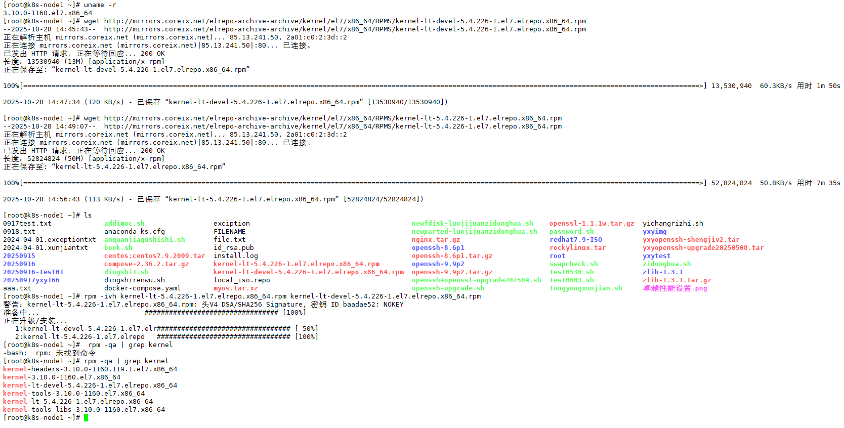 rpm -ivh kernel-lt-5.4.226-1.el7.elrepo.x86_64.rpm kernel-lt-devel-5.4.226-1.el7.elrepo.x86_64.rpm