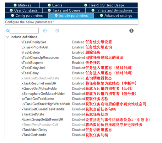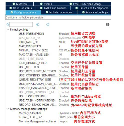 config parameters: 内核参数设置,用户根据自己的实际应用来裁剪定制 FreeRTOS 内核