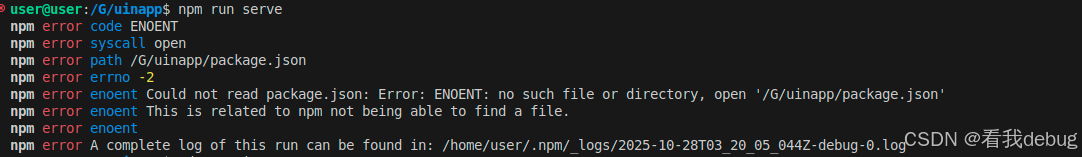 安装成功了,接下来就执行npm run serve这个就可以了不要在当前目录下执行不然会这样,要去到 我们创建的目录里面去