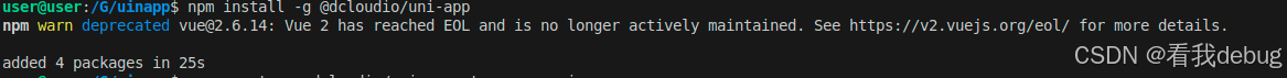 然后执行 npm install -g @dcloudio/uni-app
