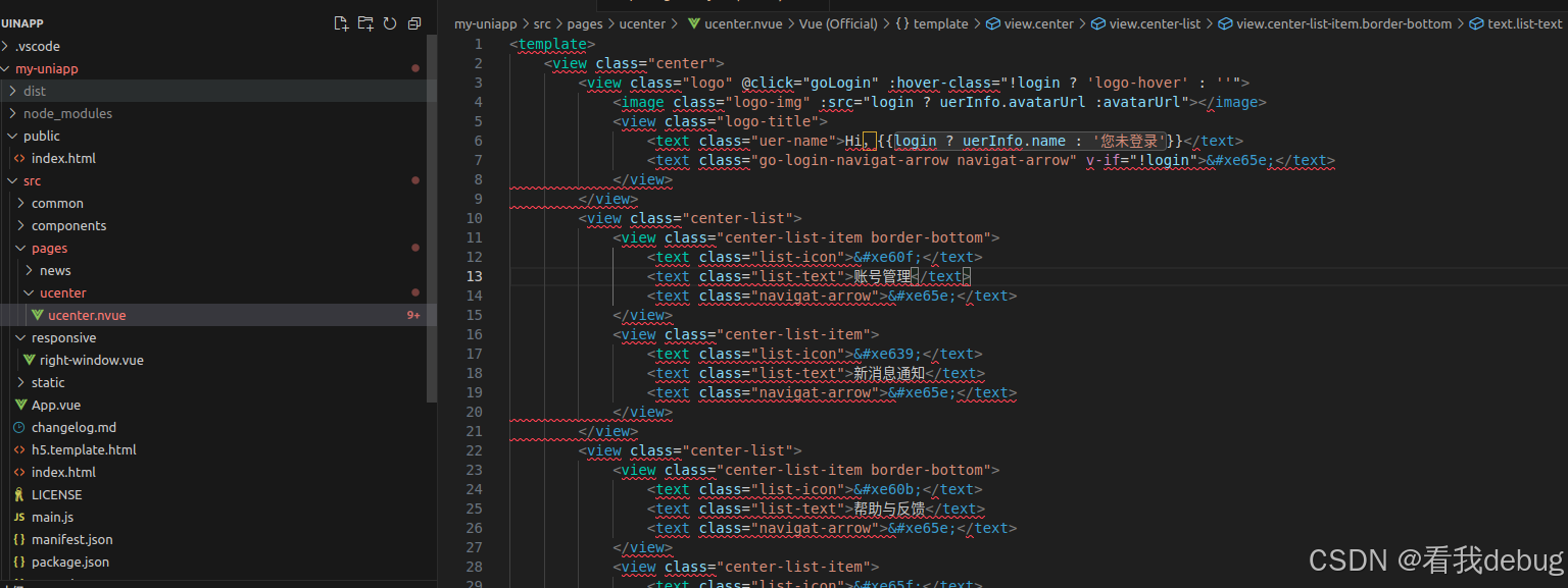 这些插件都是我针对这个uniapp下载的,那个爆红的需要到 .vscode/settings.json 文件里面再加一个2个配置,这样就不会了