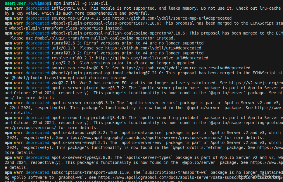npm install -g @vue/cli# 安装 DCloud 的脚手架插件