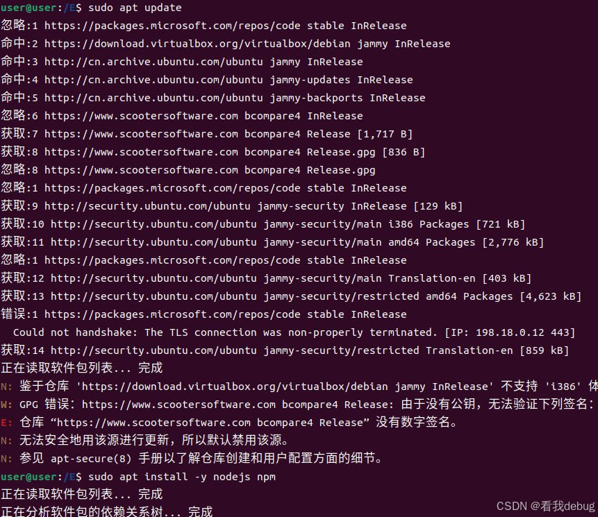 等待sudo apt install -y nodejs npm 这个的安装
