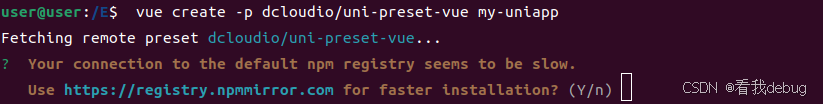 ? Your connection to the default npm registry seems to be slow. Use https://registry.npmmirror.com for faster installation? (Y/n)