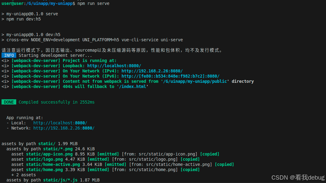 cd my-uniappnpm run serve