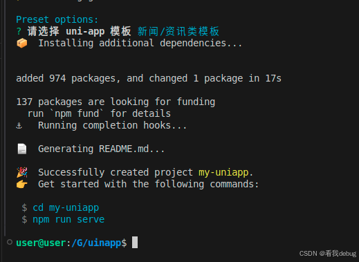 npm install -g @dcloudio/uni-app# 创建项目(选择默认模板)